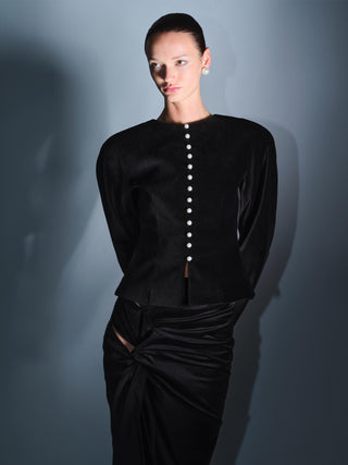 Blending vintage and modern, embellished and bold accessories, the beauty of the satin with all time classic pearls and broad shoulders, every piece creates its own atmosphere, every piece is a key for a night to remember.